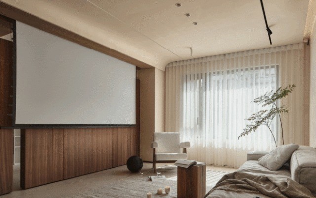 周末的时候,孩子正好放假回家,一家三口围在一起看一场或是温暖的、悲伤的、搞笑的电影,那将会是美好的回忆和温馨场景。没有了累赘无用的电视墙,采用更适用家人的投影设备,相比电影院更加的随心和放松。