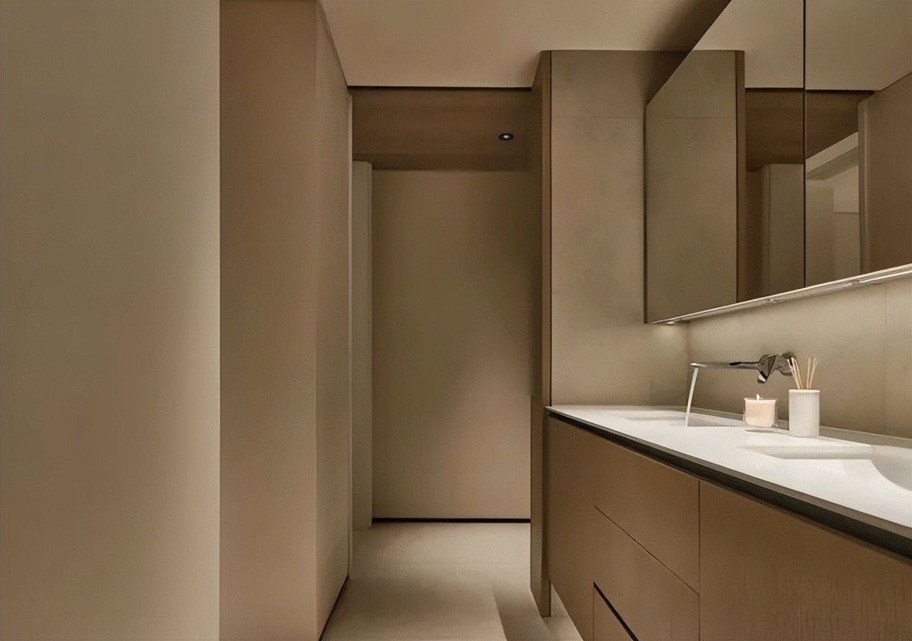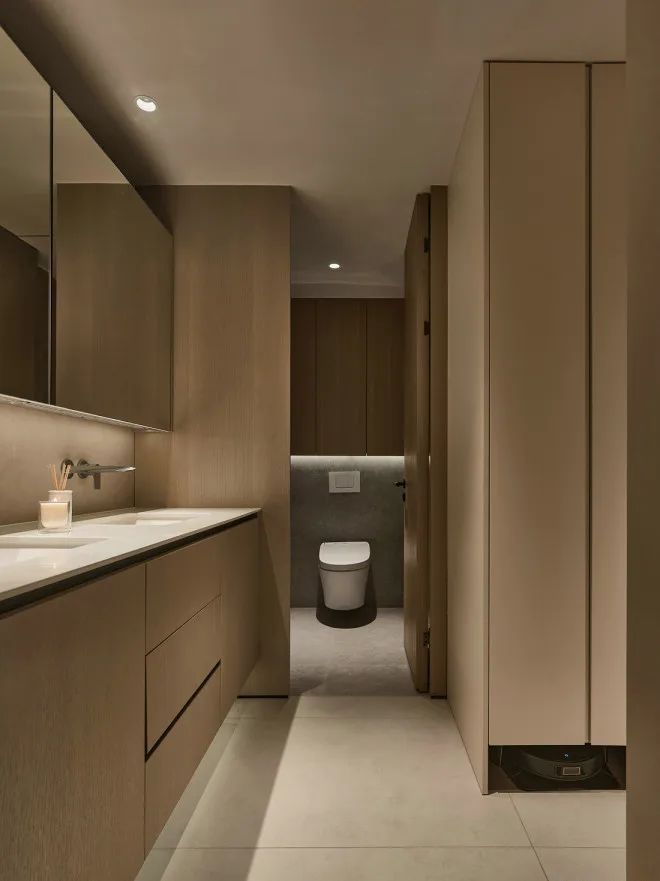 湿区采用了壁挂式悬空马桶,感应灯和感应换气扇设计,只要走进它,就有光。