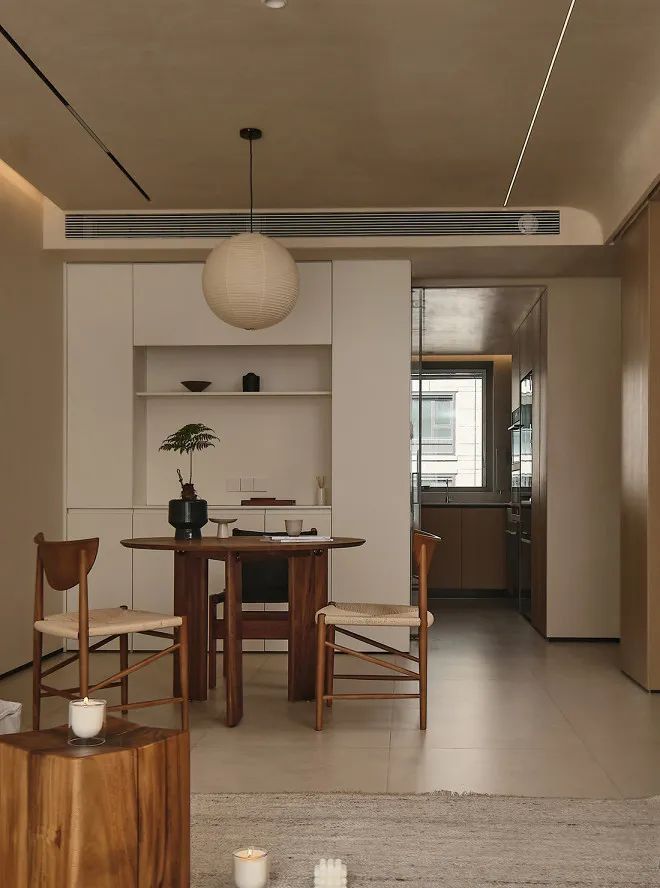 整个空间以“沉淀岁月,隐于大市”为主题理念,时间让我们对生活有了更温柔的理解,更多的感悟。梁先生和太太都是80后,女儿每个周末会回来住,夫妻双方的父母也时常来访。梁先生想要的空间是放松的,温暖的,婉约但考究,深沉与优雅并存,让全家人都能慢下来的生活方式。以这一切为核心展开设计方向。