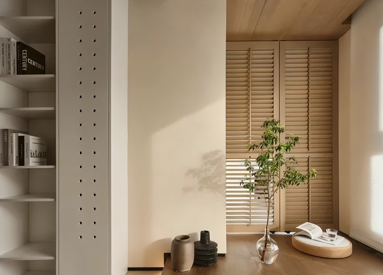 阳台被分成了两个部分,一部分做晾晒区,一部分做地台,一扇百叶门的屏隔,犹如现实和梦想,美观和实用在梁先生家都兼顾到。